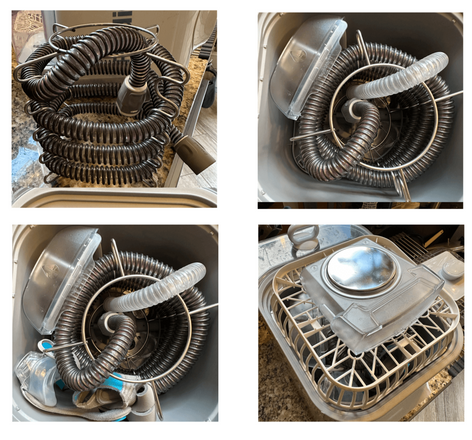 There are many ways to fit all your CPAP equipment into the RediClean wash tank. This example is one way.