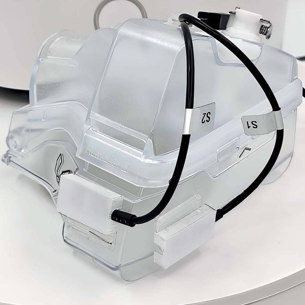 The CSpring water chamber Adapter, is designed to replace the water chamber (water tub, Water Basin) in the ResMed Airsense and Aircurve 10 CPAP - BIPAP machines with the use of the CSpring Mk2, CSpring Mk3 or CSpring MINI replenishing systems. Engineered with precision and compatibility in mind, this adapter seamlessly integrates with your existing device, providing a reliable solution for water chamber replacement. Say goodbye to worries about leaks or malfunctions – our adapter ensures optimal performance, allowing you to enjoy uninterrupted therapy with your CPAP or BIPAP machine.